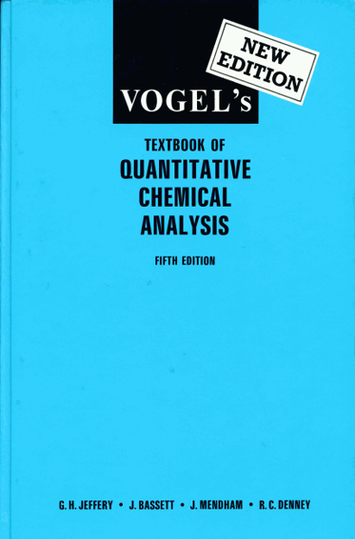 Vogel's Quantitative Chemical Analysis edisi kelima direvisi oleh G. H. Jeffery, J. Bassett, J. Mendham, dan R. C. Denney sebagai lanjutan karya klasik Arthur I. Vogel yang telah lama menjadi buku teks utama dalam analisis kimia. Buku ini menekankan prinsip kuantitatif dalam kimia analitik, menjelaskan teori di balik reaksi kimia, teknik laboratorium, serta prosedur praktis untuk mengukur dan menentukan konsentrasi zat-zat kimia. Materi disusun dari dasar teori reaksi dalam larutan dan statistik sampai teknik-teknik eksperimental seperti titrasi, gravimetri, serta metode instrumental, sehingga pembaca mendapatkan pemahaman lengkap dari teori ke aplikasi laboratorium.