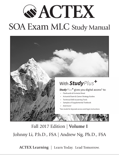 Buku ACTEX SOA Exam MLC Study Manual (Fall 2017 Edition) ditulis oleh dua pakar aktuaris: Johnny Li, Ph.D., FSA dan Andrew Ng, Ph.D., FSA, yang keduanya memiliki pengalaman panjang dalam pendidikan dan penelitian aktuaria serta statistik terapan. Manual ini diterbitkan oleh ACTEX Learning sebagai panduan resmi untuk mempersiapkan ujian MLC (Modeling Life Contingencies) dari Society of Actuaries (SOA) — salah satu ujian inti dalam kurikulum aktuaria. Buku ini mencakup materi komprehensif tentang model-model kontinjensi kehidupan, multiple state models, pendekatan perhitungan probabilitas transisi, penilaian cadangan, risiko suku bunga, profit testing, dan contoh soal serta solusi yang dirancang untuk memperkuat kemampuan menyelesaikan soal-soal ujian secara sistematis. Manual ini juga banyak memuat mock exams, latihan soal, dan worked examples yang mengikuti format ujian MLC sehingga pembaca dapat berlatih langsung menghadapi tipe soal yang mungkin keluar.
