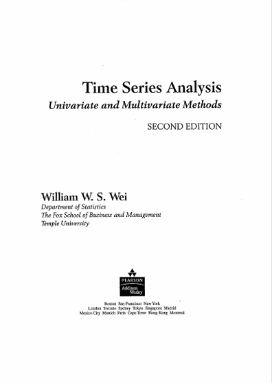 Buku Time Series Analysis: Univariate and Multivariate Methods karya William W. S. Wei membahas secara mendalam metode analisis deret waktu baik univariat maupun multivariat dengan pendekatan teori dan aplikasi yang seimbang. Buku ini menjelaskan konsep dasar proses stokastik, fungsi autokorelasi, model stasioner dan nonstasioner seperti AR, MA, ARMA, dan ARIMA, metode peramalan, identifikasi model, estimasi parameter, serta teknik lanjutan seperti analisis spektral, model transfer function, GARCH, dan model vektor. Dengan banyak contoh empiris dan ilustrasi, buku ini memberikan pemahaman komprehensif tentang teknik pemodelan dan prediksi data yang berubah seiring waktu.