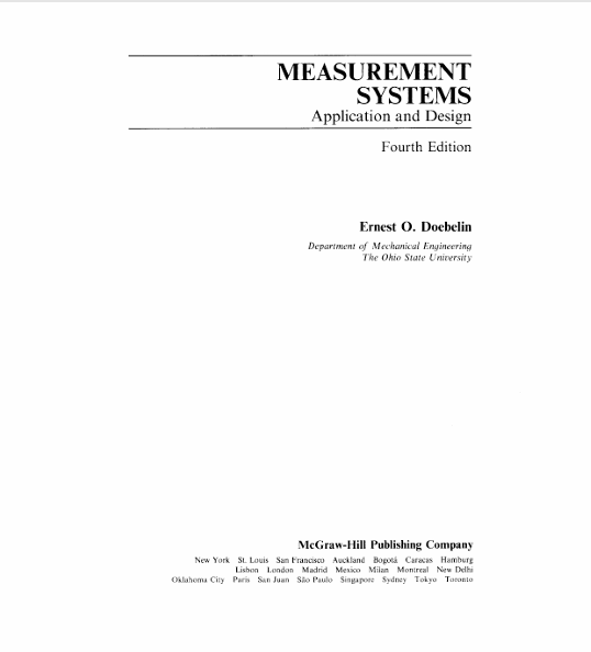Buku Measurement Systems: Application and Design 4th Edition ditulis oleh Ernest O. Doebelin, seorang profesor teknik mesin yang dikenal luas dalam bidang instrumentasi dan sistem pengukuran. Buku ini diterbitkan oleh McGraw-Hill dan menjadi salah satu referensi penting dalam mempelajari prinsip-prinsip dasar sistem pengukuran dalam rekayasa. Materi yang dibahas mencakup konsep dasar pengukuran, karakteristik sistem pengukuran, analisis kesalahan dan ketidakpastian pengukuran, sensor dan transduser, sistem akuisisi data, serta metode analisis sinyal dalam sistem instrumentasi. Buku ini menyajikan pendekatan teoritis yang kuat disertai dengan contoh aplikasi praktis dalam berbagai sistem teknik.