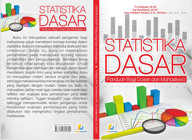 Buku Statistika Dasar: Panduan Bagi Dosen dan Mahasiswa ditulis oleh Tri Hidayati, Ita Handayani, dan Ines Heidiani Ikasari, yang merupakan akademisi dan pengajar di bidang matematika dan statistika. Buku yang diterbitkan oleh CV. Pena Persada pada tahun 2019 ini disusun sebagai buku pengantar untuk membantu mahasiswa memahami konsep-konsep dasar statistika secara sistematis. Materi yang dibahas meliputi pengertian dasar statistika, penyajian dan pengolahan data, ukuran pemusatan dan penyebaran data, konsep probabilitas, distribusi peluang, sampling dan populasi, hingga analisis statistik seperti korelasi, regresi, dan analisis variansi. Selain penjelasan konsep, buku ini juga dilengkapi dengan latihan soal serta tugas evaluatif sehingga memudahkan mahasiswa dan dosen dalam proses pembelajaran dan penilaian pemahaman materi statistika.