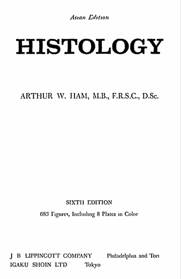Buku Histology (6th Edition) ditulis oleh Arthur W. Ham, seorang ahli histologi yang dikenal melalui kontribusinya dalam pengembangan ilmu anatomi mikroskopis. Buku ini merupakan salah satu referensi klasik yang membahas struktur mikroskopis sel dan jaringan tubuh secara sistematis. Isinya mencakup berbagai jenis jaringan seperti epitel, jaringan ikat, otot, dan saraf, serta organisasi seluler pada berbagai organ tubuh. Buku ini juga dilengkapi dengan ilustrasi dan deskripsi detail yang membantu pembaca memahami hubungan antara struktur mikroskopis dan fungsi biologis dalam tubuh.