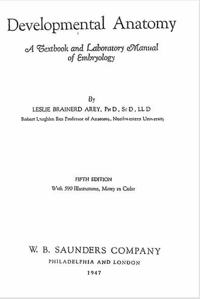 Buku Developmental Anatomy: A Textbook and Laboratory Manual of Embryology (5th Edition) ditulis oleh Leslie Brainerd Arey, seorang profesor anatomi di Northwestern University yang dikenal atas kontribusinya dalam bidang embriologi manusia. Buku ini merupakan referensi klasik yang membahas perkembangan embrio secara sistematis, mulai dari pembentukan sel germinal, fertilisasi, pembelahan sel, hingga diferensiasi organ (organogenesis). Selain itu, buku ini juga dilengkapi dengan panduan praktikum laboratorium yang memuat studi embrio hewan seperti ayam dan babi, serta ilustrasi ilmiah yang membantu visualisasi proses perkembangan. Buku ini menekankan aspek struktural perkembangan serta hubungan antara anatomi dan proses pertumbuhan organisme. :contentReference[oaicite:0]{index=0}
