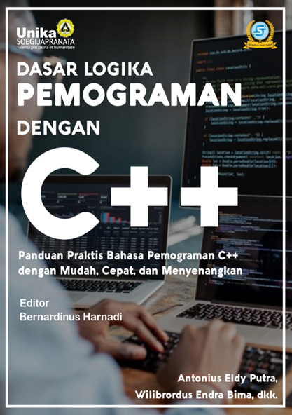 Buku Dasar Logika Pemrograman dengan C++ ditulis oleh Bernardinus Harnadi, Antonius Eldy Putra, Wilibrordus Endra Bima, Alfonso Praditya Galuh Mahesa, Ignatius Yogyawan Dwi, Mikha Eka Saputra, dan Irwan Wirawan Gulo. Buku ini dirancang untuk memberikan pemahaman dasar yang kuat mengenai logika pemrograman dan implementasinya menggunakan bahasa C++. Materi yang dibahas meliputi konsep dasar pemrograman seperti tipe data, struktur kendali (percabangan dan perulangan), fungsi, serta pengenalan struktur data dan pemrograman berorientasi objek. Selain itu, buku ini dilengkapi dengan contoh kode program dan latihan praktis yang membantu pembaca memahami konsep secara aplikatif dan sistematis. .