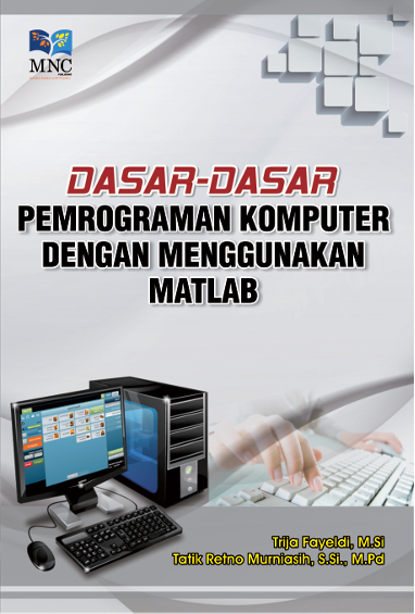 Buku Dasar-Dasar Pemograman Komputer Dengan Menggunakan MATLAB ditulis oleh Trija Fayeldi dan Tatik Retno Murniasih. Buku ini membahas konsep dasar pemrograman komputer yang dimulai dari pemahaman algoritma sebagai inti penyelesaian masalah, kemudian diimplementasikan menggunakan bahasa pemrograman MATLAB. Materi yang disajikan meliputi tipe data, variabel, notasi algoritmik, pseudocode, struktur kendali seperti percabangan dan perulangan, serta teknik tracing algoritma. Buku ini dirancang secara sistematis dan praktis agar pembaca dapat memahami proses pemrograman secara bertahap dari konsep hingga implementasi. .
