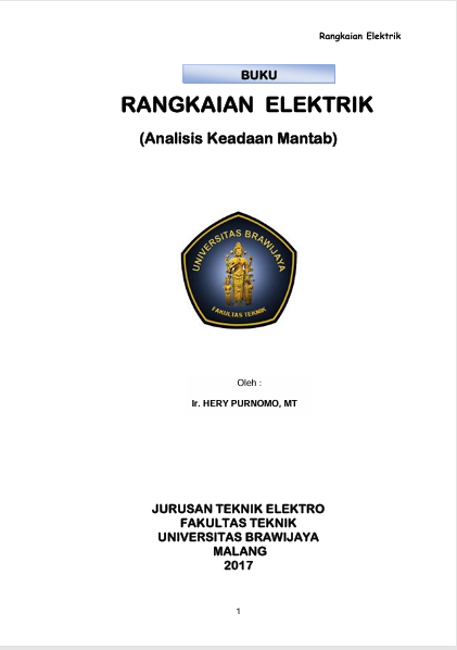 Buku Rangkaian Elektrik: Analisis Keadaan Mantab ditulis oleh Hery Purnomo, seorang dosen di bidang Teknik Elektro. Buku ini disusun sebagai bahan ajar untuk mendukung pembelajaran mata kuliah rangkaian elektrik di perguruan tinggi. Isinya mencakup konsep dasar rangkaian listrik, hukum-hukum dasar seperti hukum Ohm dan Kirchhoff, serta berbagai metode analisis rangkaian. Fokus utama buku ini adalah analisis rangkaian dalam kondisi keadaan mantap (steady state), baik pada rangkaian arus searah (DC) maupun arus bolak-balik (AC), termasuk pembahasan sistem satu fasa dan tiga fasa. Penyajian materi dilengkapi dengan contoh soal untuk membantu pemahaman konsep secara sistematis.