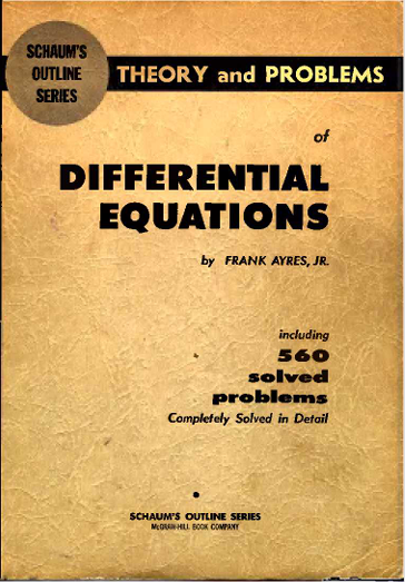 Buku Theory and Problems of Differential Equations ditulis oleh Frank Ayres Jr., seorang profesor matematika yang dikenal sebagai penulis seri Schaum’s Outline. Buku ini menyajikan konsep dasar hingga lanjutan dalam persamaan diferensial, termasuk persamaan diferensial orde pertama dan lebih tinggi, metode penyelesaian seperti pemisahan variabel, persamaan linear, serta aplikasi dalam bidang fisika dan teknik. Ciri khas buku ini adalah penyajian teori secara ringkas yang dilengkapi dengan ratusan soal latihan beserta solusi langkah demi langkah, sehingga membantu pembaca memahami konsep secara praktis dan sistematis.