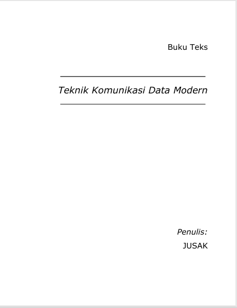 Buku Teknik Komunikasi Data Modern ditulis oleh Jusak, seorang akademisi di bidang teknologi informasi dan jaringan komputer. Buku ini membahas berbagai metode komunikasi data secara teoritis maupun praktis, disertai dengan contoh kasus nyata dalam teknologi modern. Materinya mencakup konsep dasar seperti data, sinyal, dan protokol, teknik transmisi digital dan analog, multiplexing, deteksi dan koreksi kesalahan, hingga pengendalian data-link dan akses kanal. Selain itu, buku ini juga mengulas teknologi komunikasi terkini seperti Wireless LAN, WiMAX, Bluetooth, dan Long Term Evolution (LTE), sehingga memberikan gambaran lengkap tentang perkembangan komunikasi data modern ..