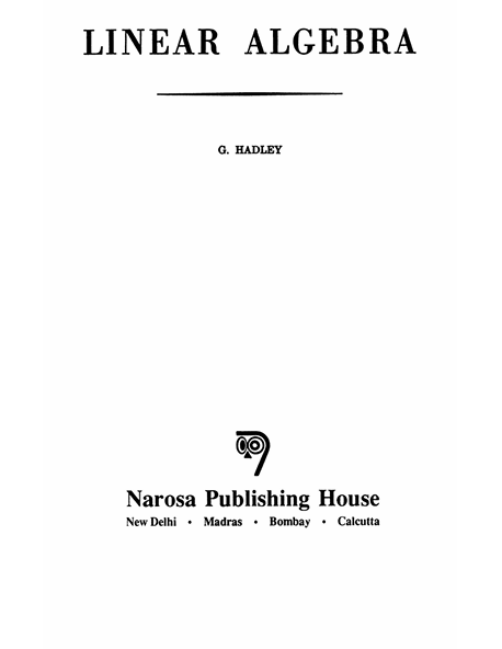 Buku Linear Algebra ditulis oleh G. Hadley, seorang akademisi yang berkontribusi dalam pengembangan literatur matematika terapan. Buku ini merupakan salah satu referensi klasik dalam bidang aljabar linear yang membahas konsep-konsep fundamental seperti vektor, matriks, determinan, transformasi linear, sistem persamaan linier, serta nilai dan vektor eigen. Selain itu, buku ini juga mengulas topik lanjutan seperti bentuk kuadratik dan geometri berdimensi banyak, dengan pendekatan yang menggabungkan teori matematika dan aplikasi praktis dalam bidang teknik dan ilmu terapan. .