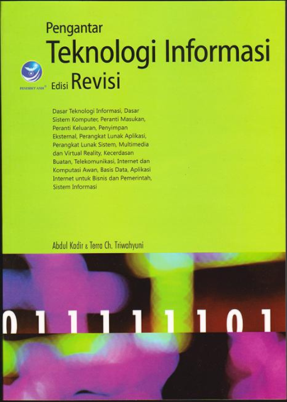 Buku Pengantar Teknologi Informasi ditulis oleh Abdul Kadir dan Terra Ch. Triwahyuni, dua akademisi yang dikenal dalam bidang teknologi informasi di Indonesia. Buku ini menyajikan pembahasan komprehensif mengenai konsep dasar teknologi informasi, termasuk sistem komputer, perangkat input dan output, media penyimpanan, perangkat lunak, serta perkembangan teknologi seperti multimedia, kecerdasan buatan, dan komputasi awan. Selain itu, buku ini juga mengulas jaringan komputer, internet, basis data, serta penerapan teknologi informasi dalam bisnis dan pemerintahan, sehingga memberikan gambaran menyeluruh tentang peran TI dalam kehidupan modern. .
