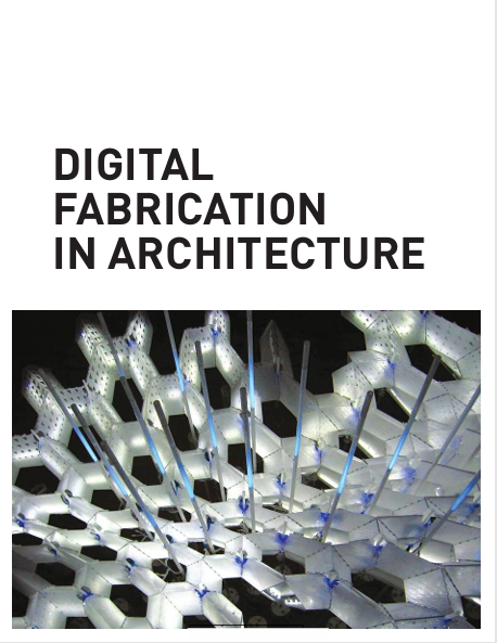 Buku Digital Fabrication in Architecture ditulis oleh Nick Dunn, seorang akademisi dan peneliti di bidang arsitektur dan urban design. Buku ini membahas perkembangan teknologi digital dalam proses perancangan dan konstruksi arsitektur, khususnya penggunaan perangkat lunak desain seperti CAD serta teknologi fabrikasi seperti CNC milling, laser cutting, dan rapid prototyping. Dunn menjelaskan bagaimana data digital dapat diterjemahkan menjadi bentuk fisik melalui proses fabrikasi, serta bagaimana teknologi ini memungkinkan terciptanya desain yang kompleks dan inovatif yang sulit dicapai dengan metode konvensional. Buku ini dibagi ke dalam beberapa bagian utama seperti generation, integration, dan strategies yang menjelaskan tahapan dalam proses desain hingga produksi ..