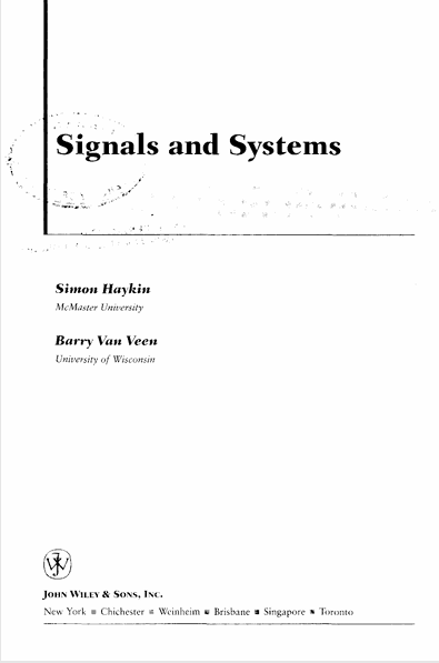 Buku Signals and Systems ditulis oleh Simon Haykin dan Barry Van Veen, yang merupakan akademisi terkemuka di bidang teknik elektro dan pengolahan sinyal. Buku ini menyajikan pembahasan komprehensif mengenai konsep dasar sinyal dan sistem, baik dalam domain waktu kontinu maupun diskrit. Materi yang dibahas meliputi representasi sinyal, sistem linear time-invariant (LTI), konvolusi, transformasi Fourier, transformasi Laplace, serta z-transform. Selain itu, buku ini juga mengaitkan teori dengan aplikasi nyata seperti sistem komunikasi, pemrosesan sinyal digital, dan kontrol, serta dilengkapi dengan banyak contoh dan latihan untuk memperkuat pemahaman konsep.